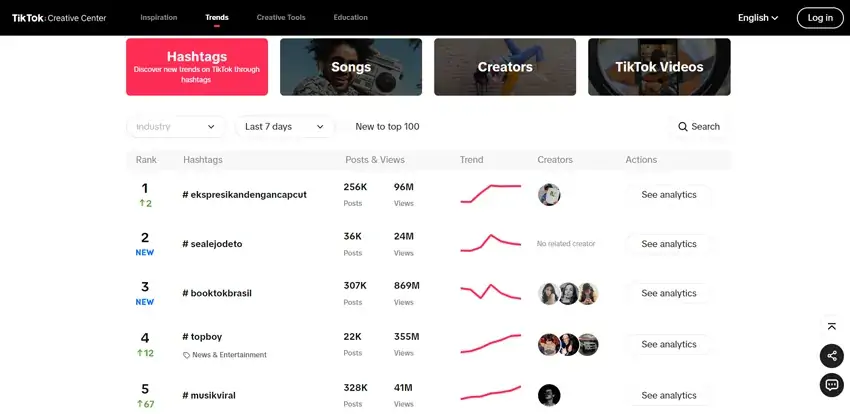 Vous pouvez également trouver la liste des morceaux populaires sur le marché des créateurs TikTok.